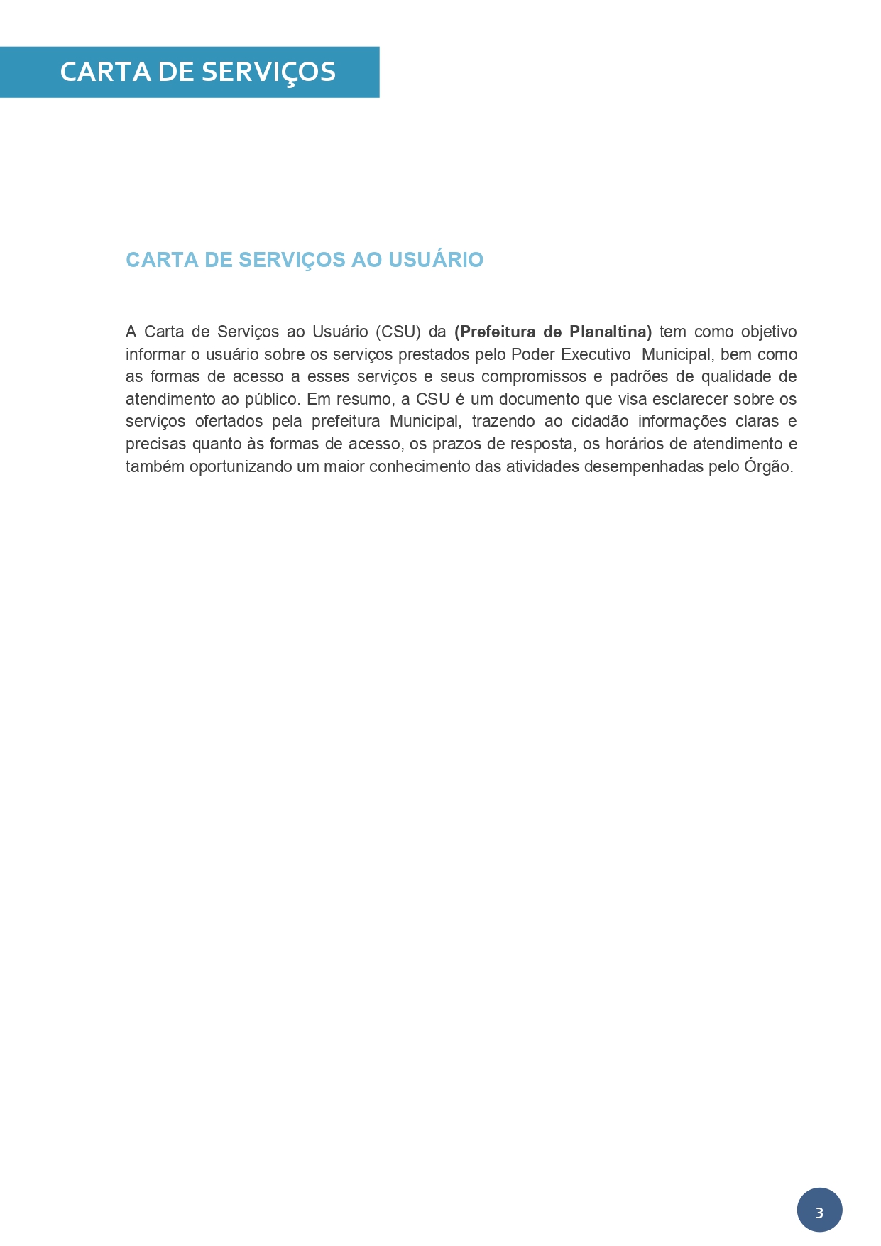 A Carta de Serviços ao Cidadão informa os cidadãos sobre quais os serviços prestados pelos órgãos e entidades da Administração Municipal, como acessar e obter esses serviços e quais são os compromissos de atendimento estabelecidos. A partir da transparência, a Carta de Serviços se apresenta como instrumento educativo.